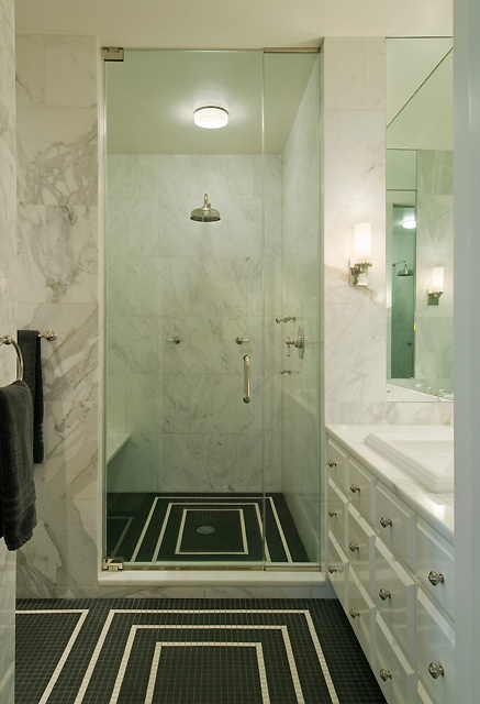 HVAC work was concealed using streamline linear diffusers. Custom made floor to ceiling cabinetry was installed in the kitchen along with granite countertops and high-end appliances. Bathrooms were restored using Crema Marfil marble tiles. The detailed crown mouldings were highlighted by the installation of recessed cove lighting.